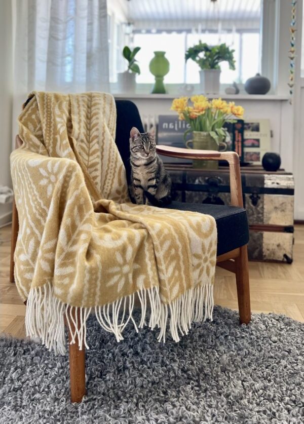 Kerstin takes inspiration from Swedish stencil paintings, folk costumes, old wallpapers, and her beautiful native countryside to create a range of unusually happy blankets!