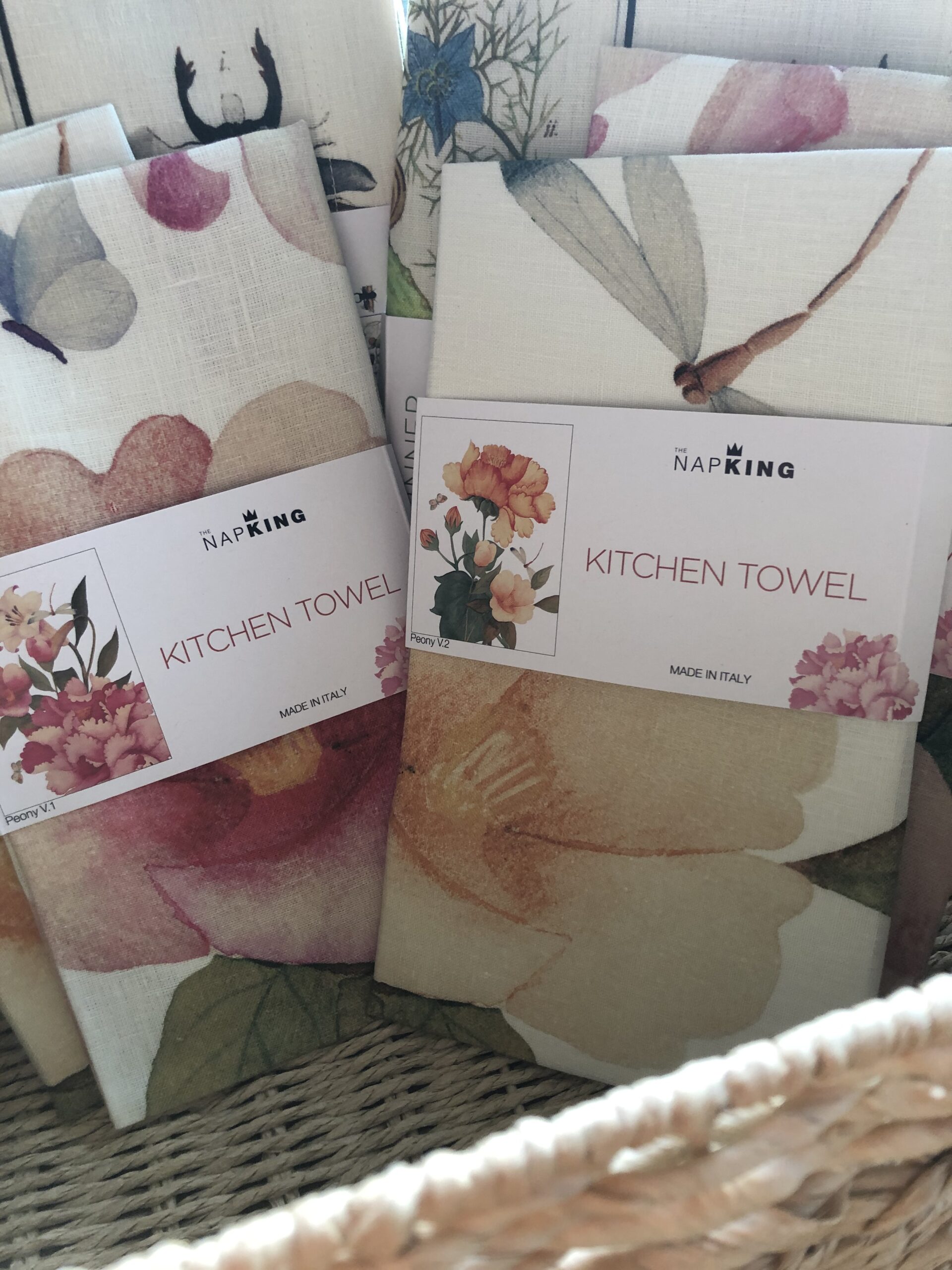 / NapKing Linen Kitchen Towel PEONY Orange